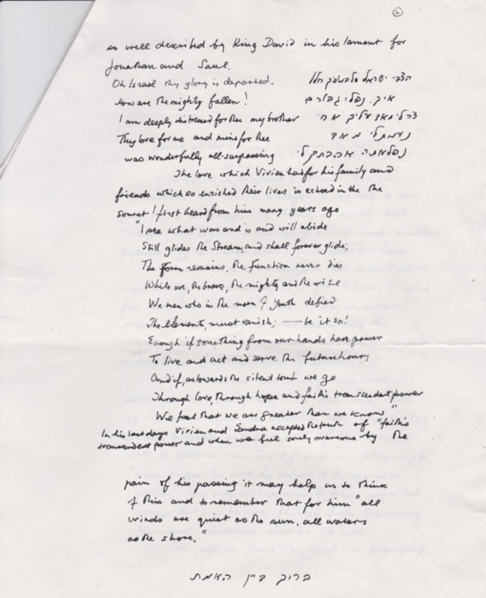 “It is not easy for me to speak of Amnon Vivien Pilichowski. He was a paragon of loyalty to his friends, a worshipper of beauty in poetry both French and English, a devotee of architecture and the possessor of a charm which never deserted him.